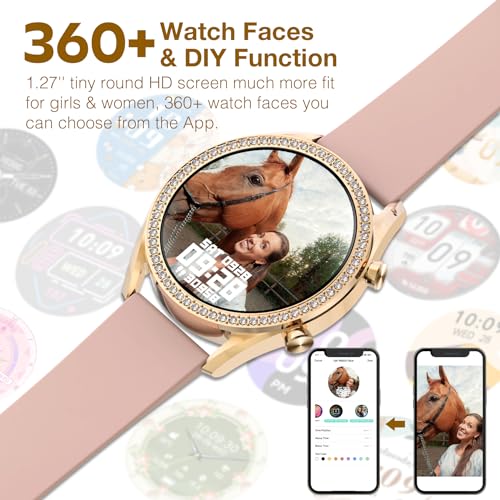 The watch features a fashionable design with diamond accents and a rose gold color, appealing to women's tastes.